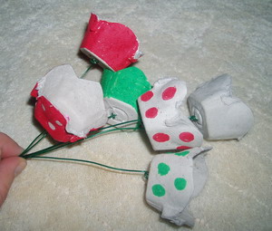 O ajuntem les de cartró que haurem pintat, també lligant-les per fer el ram.